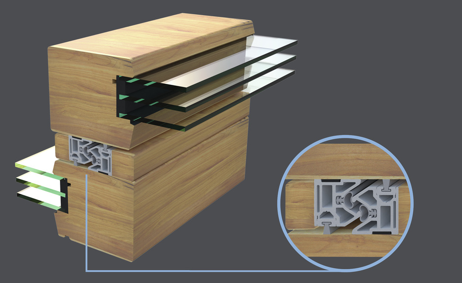 Kombinacija lesa in aluminija daje domu znotraj toplino leza, zunaj pa je okno trajno taščiteno z oblogo iz aluminija.